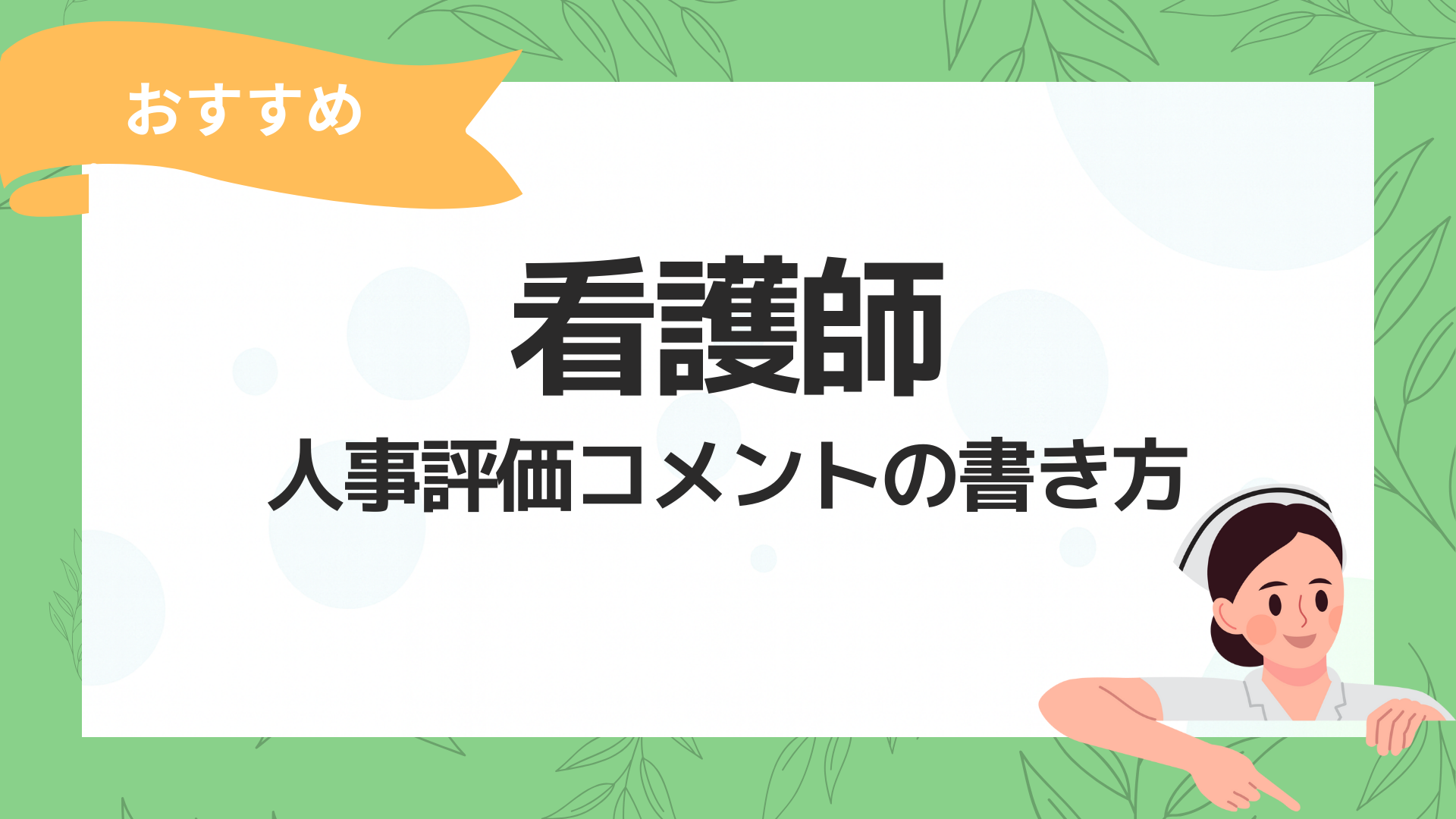 人事評価コメントは、単なる「感想」ではなく、事実・改善・成長を伝えるコミュニケーションツールです。特に看護師のように評価が曖昧になりがちな職種では、具体的で建設的な表現が評価の透明性・信頼性を高めるカギになります。