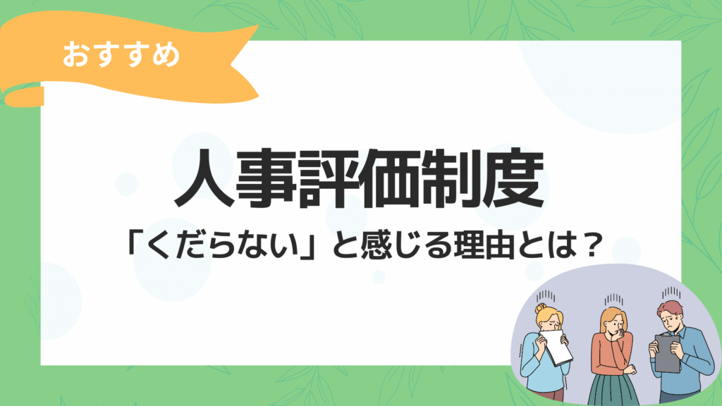 人事評価を「くだらない」と感じる人が増えている現状 人事評価制度は本来、社員の成長を支援し、公平な処遇を行うための仕組みです。しかし近年、その制度に対して「く... -