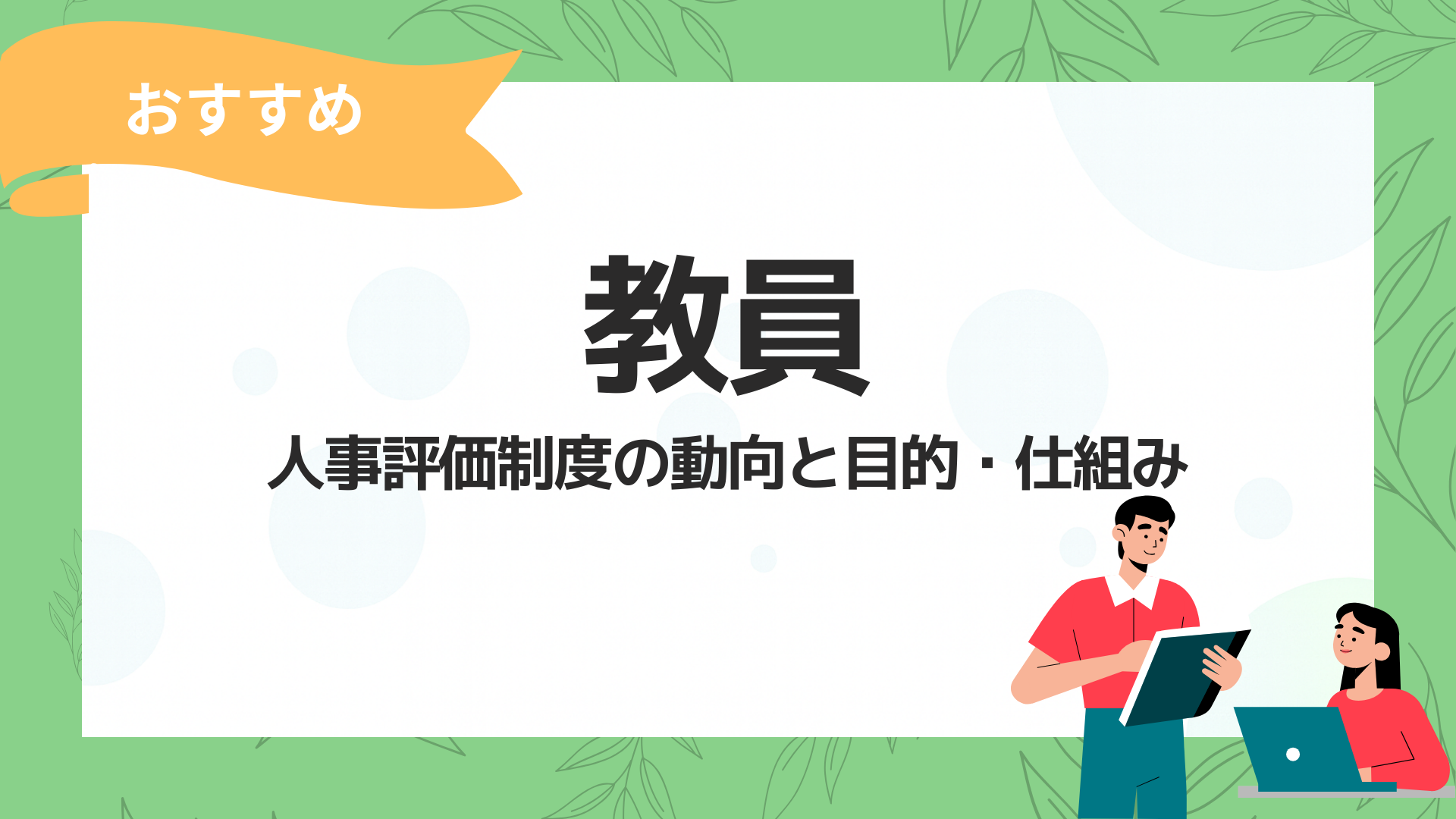 本章では、背景・目的・評価項目といった実施内容を整理し、学校教育における人事評価制度の役割を段階的に解説します。